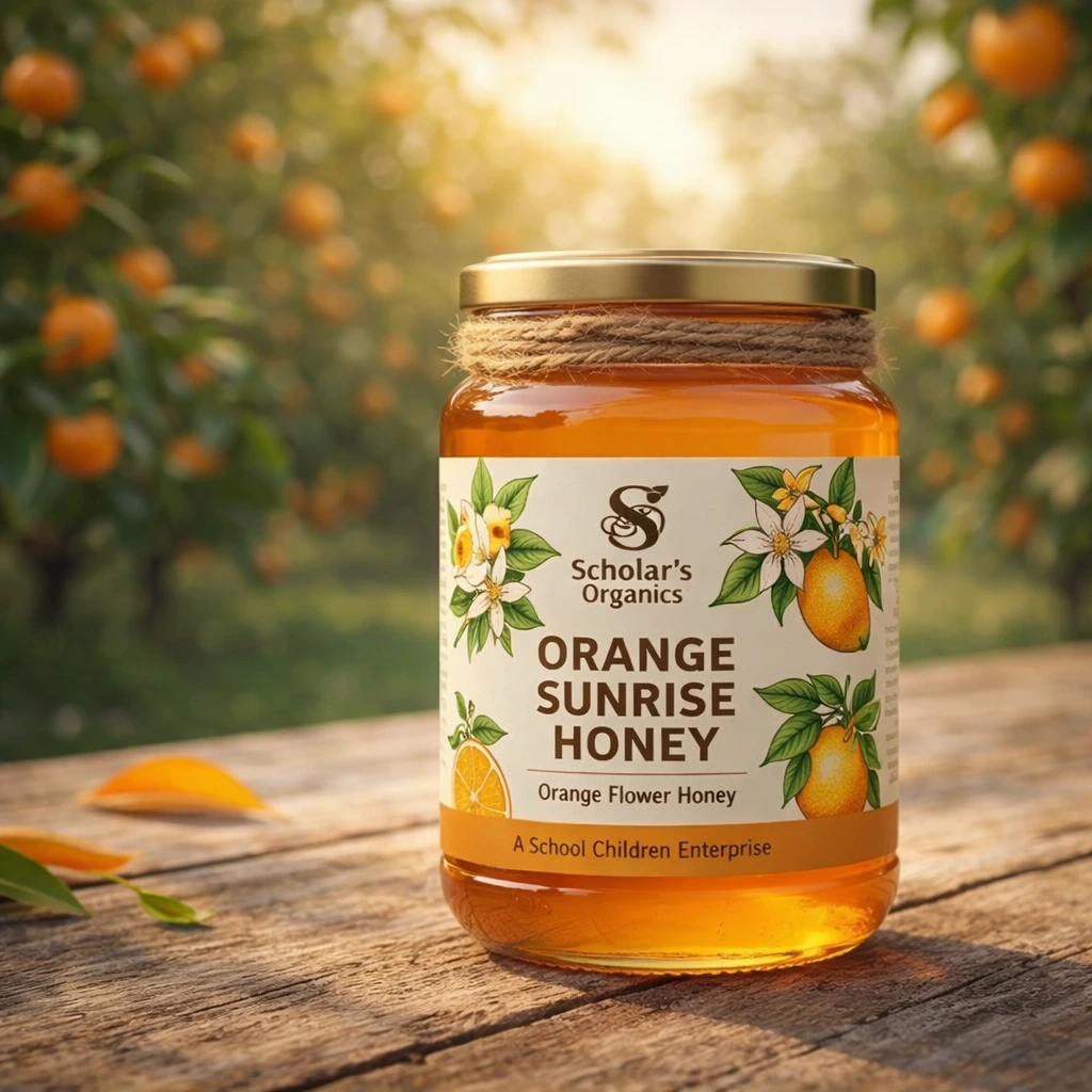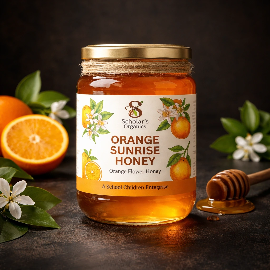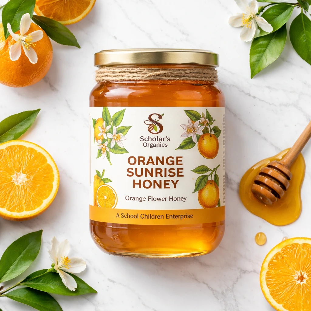 Scholar’s Organics Orange Sunrise Honey – 100% Pure Orange Flower Honey | Raw Natural Honey | No Added Sugar | Premium Glass Jar | School Children Enterprise | 500g